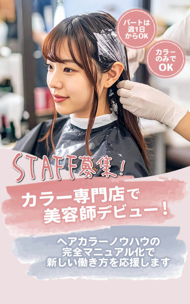 お客様対応はシャンプー・カラー塗布・レジ対応になります。